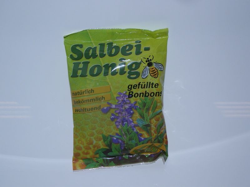 Složení:cukr, glukos. sirup,šalvějový čaj(8,6 %), med (6,8 %), přírodní šalvějový extrakt (0,3 %).